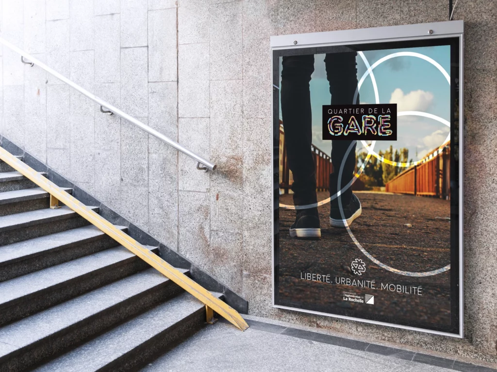 Dans le cadre du projet de rénovation et de dynamisation du quartier de la Gare à La Rochelle, la mission consistait à concevoir une identité visuelle forte et fédératrice, capable d’accompagner la transformation urbaine en cours.